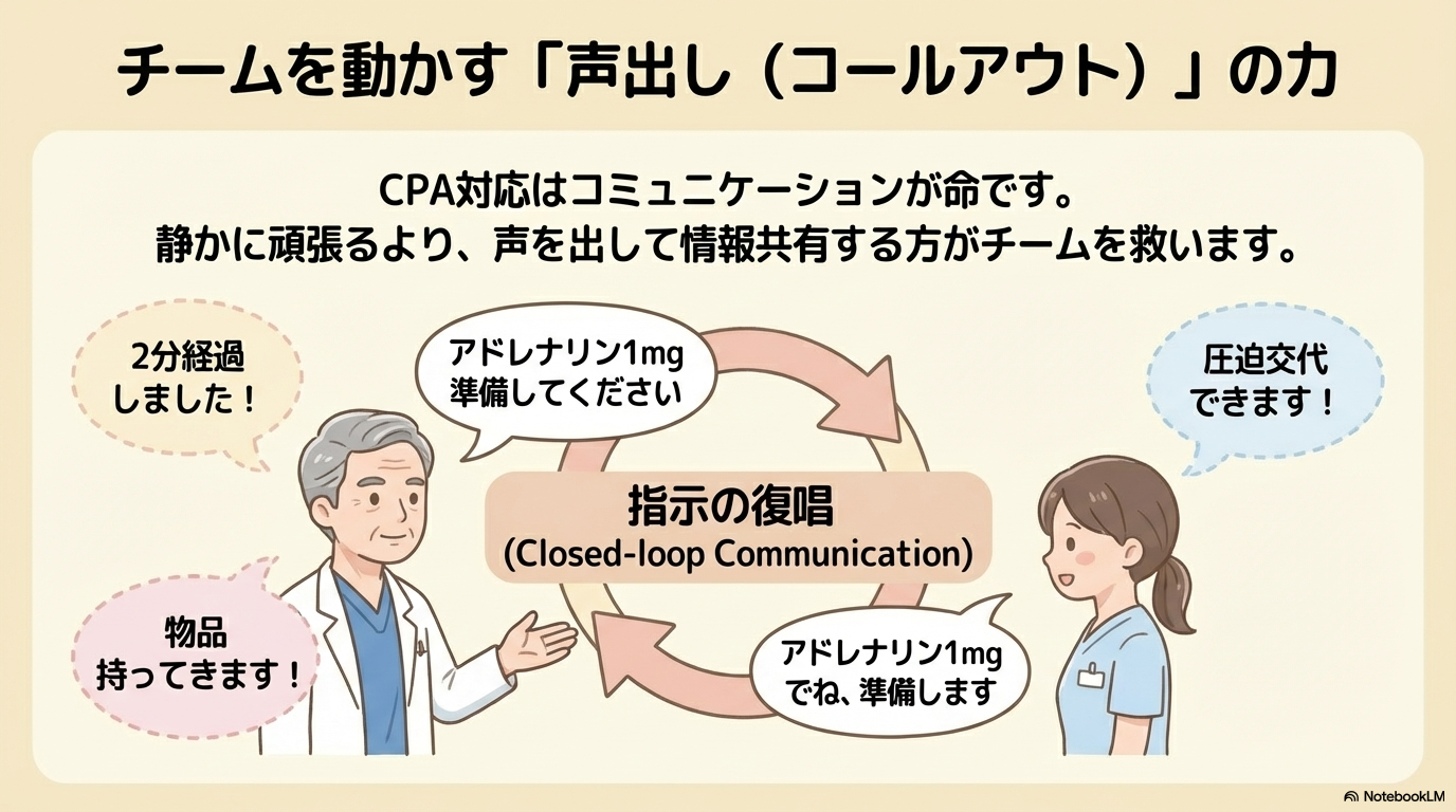 CPA対応では、CPRを「ただ行う」だけでなく、チームの中で役割を果たすことが重要です。