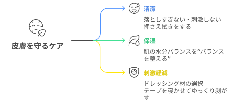 皮膚そのものを守るケアと、外力(圧・ずれ・摩擦)を減らす工夫の両方が大切になります🩺