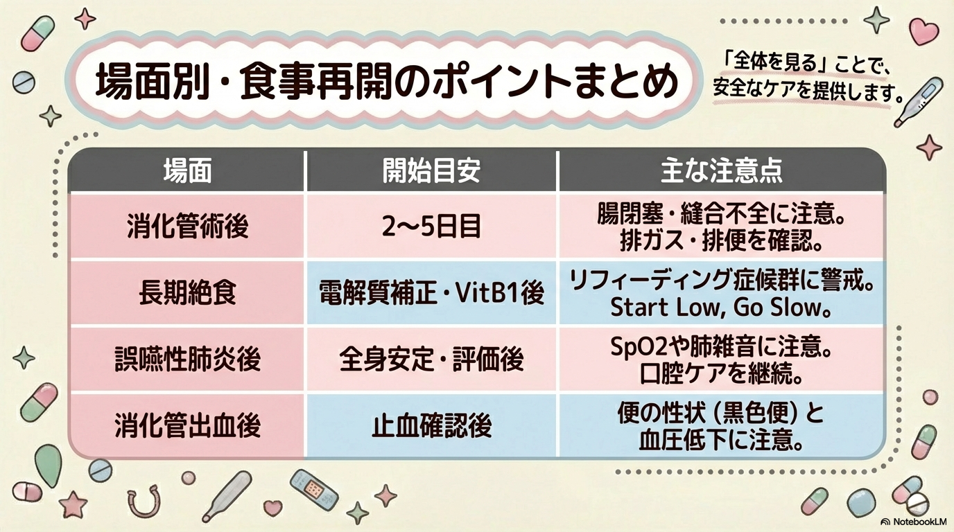 ✅まとめ|この記事で学べる絶食後の食事再開の判断視点