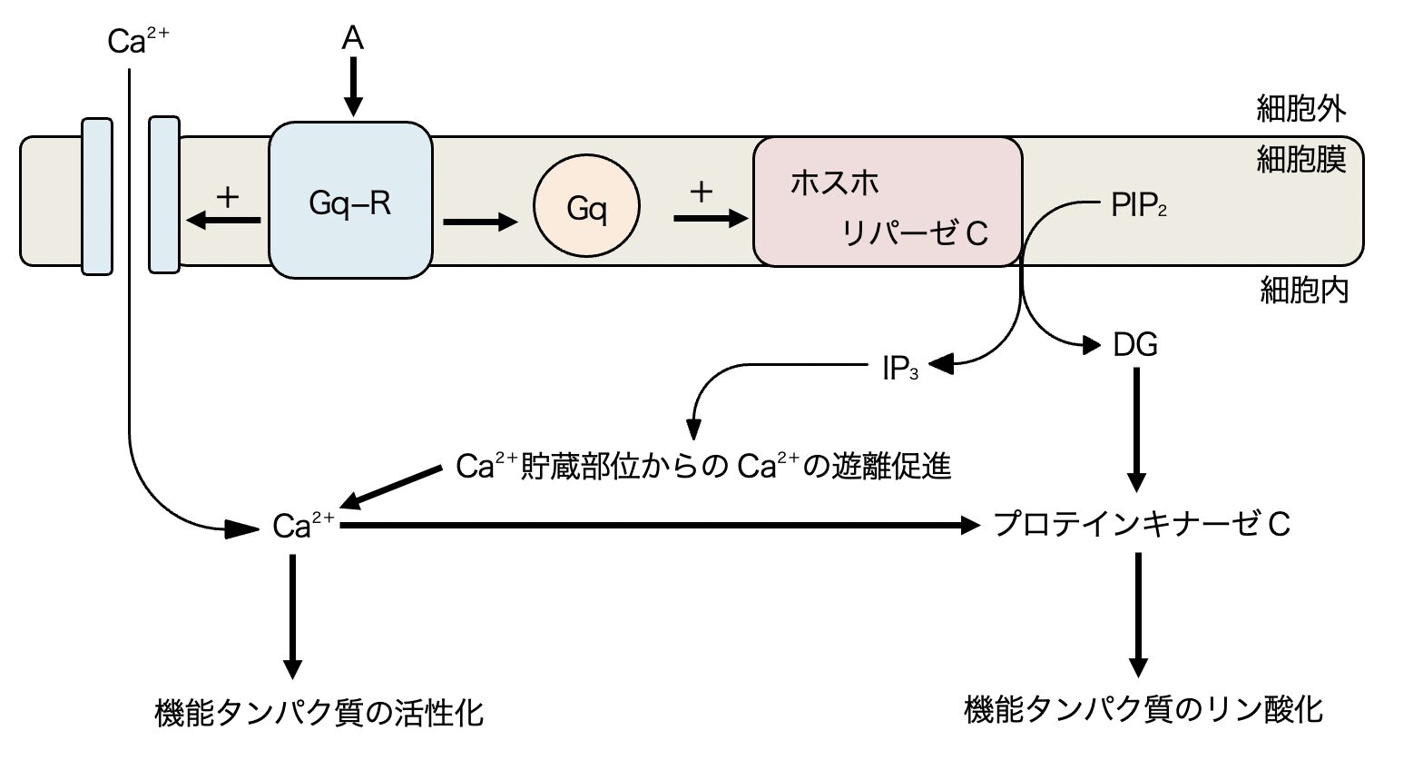 これらはいずれもPLCβを活性化し、細胞内Ca²⁺濃度の上昇やプロテインキナーゼC(PKC)の活性化を引き起こします。