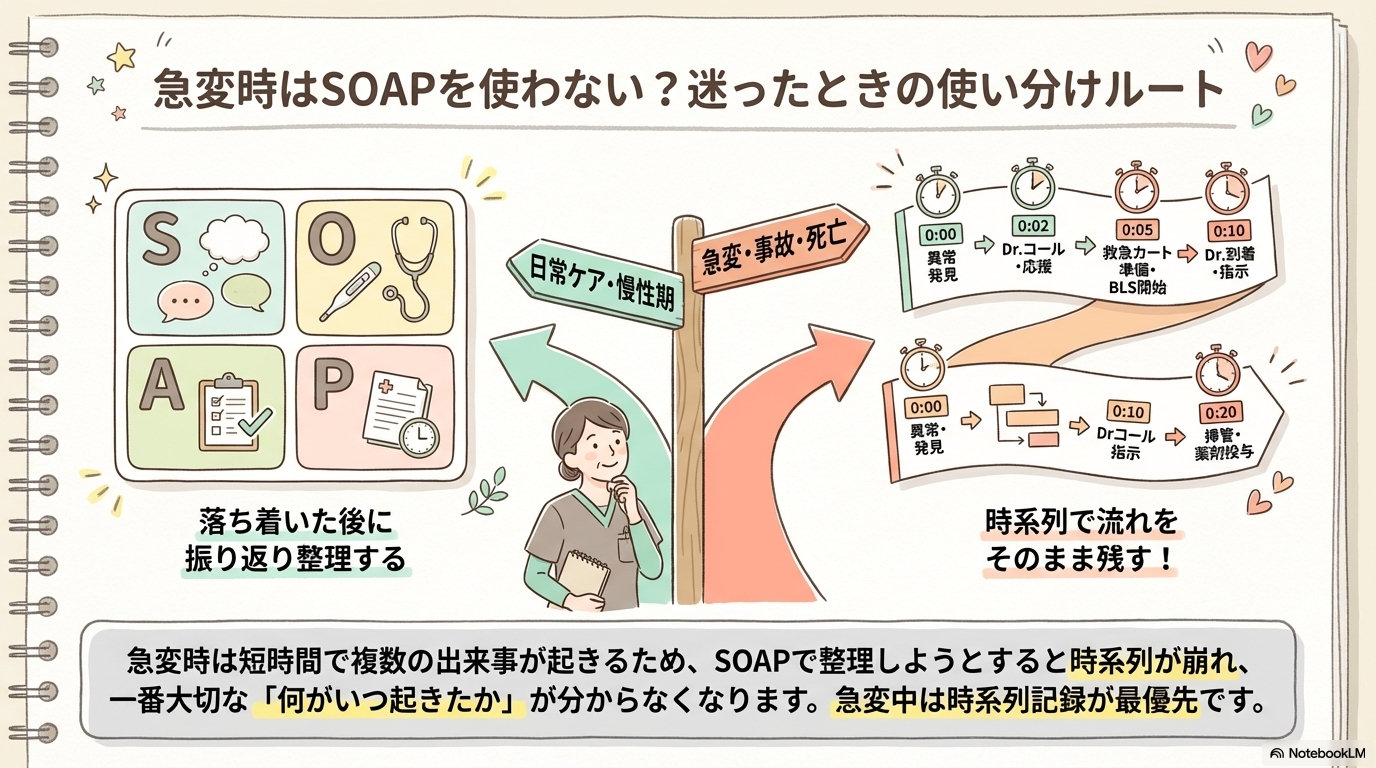 - 急変時記録は「時系列」で書く