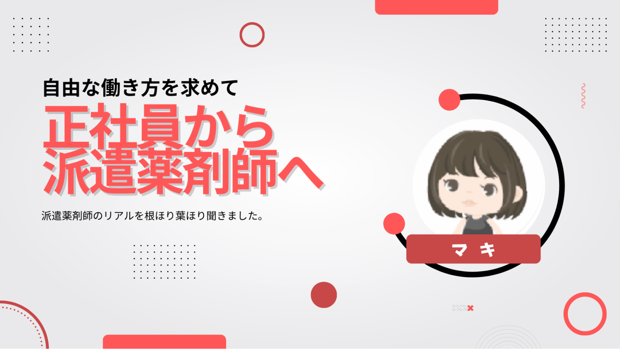 今回お話を伺ったのは、管理薬剤師としての経験を経て、現在は派遣薬剤師として活躍している マキさん。
