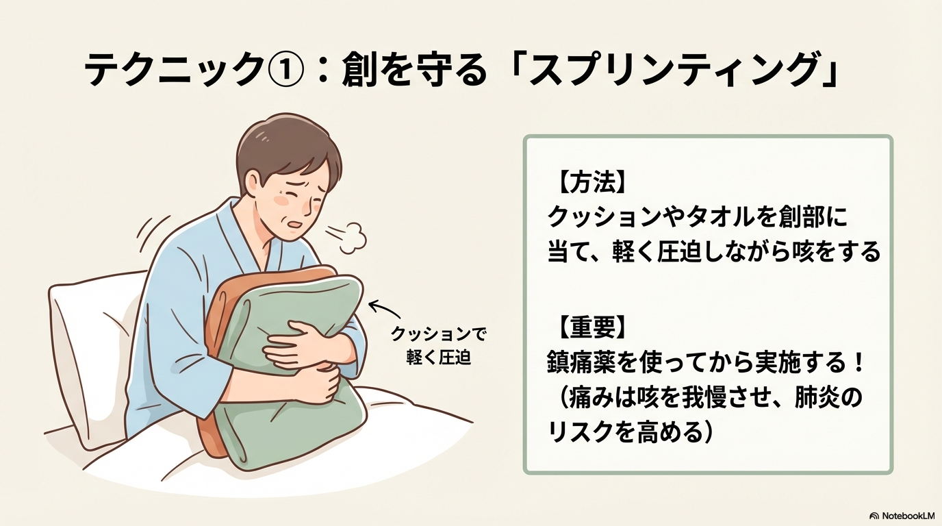 - 離床・咳嗽時に創を守る看護の工夫