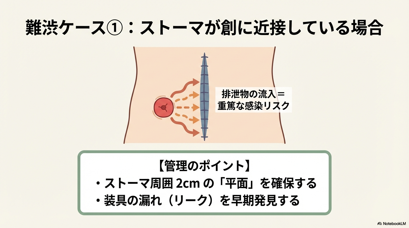 ストーマが近接している場合や、すでに創離開を起こしている場合は、看護の難易度が一気に上がります。