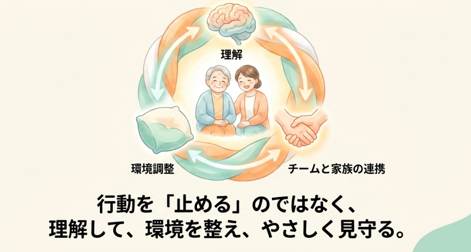 - 看護は「止める」ではなく「環境と関わりでコントロール」が基本