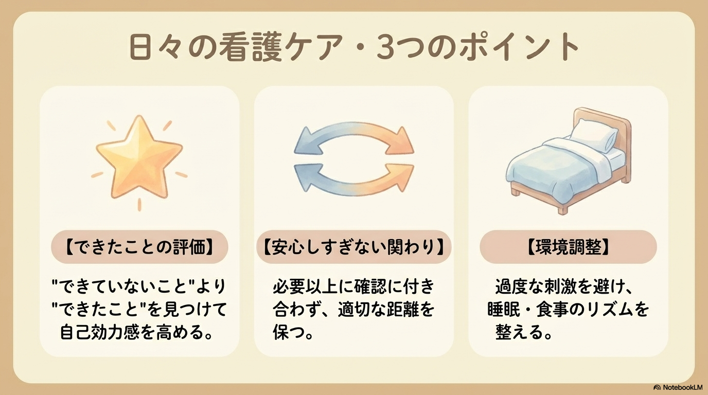 - 安心しすぎない関わり:過剰に確認に付き合わない