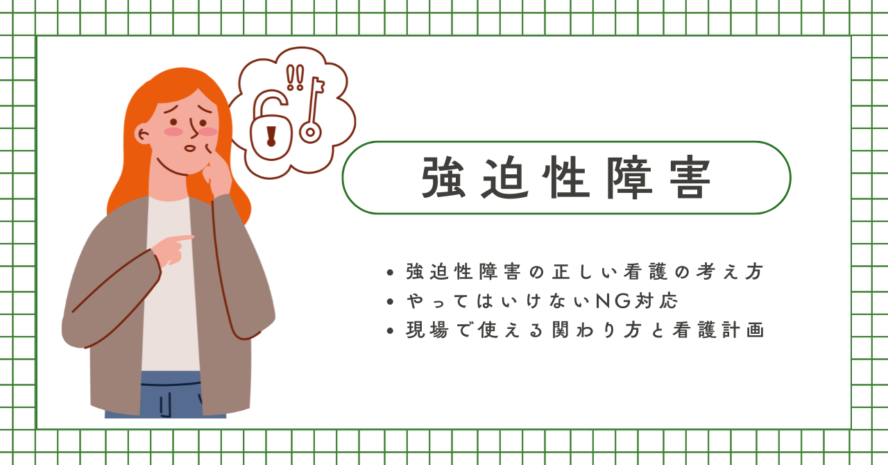 強迫性障害の看護は「無理にやめさせる」のではなく、不安に寄り添いながら段階的に行動を変えていく支援が基本です。