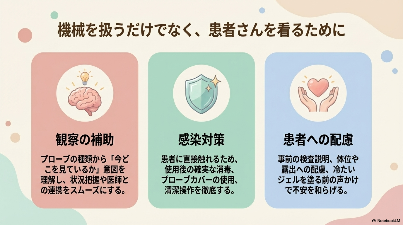 プローブの種類を理解したら、次に大切なのは「看護でどう活かすか」です。