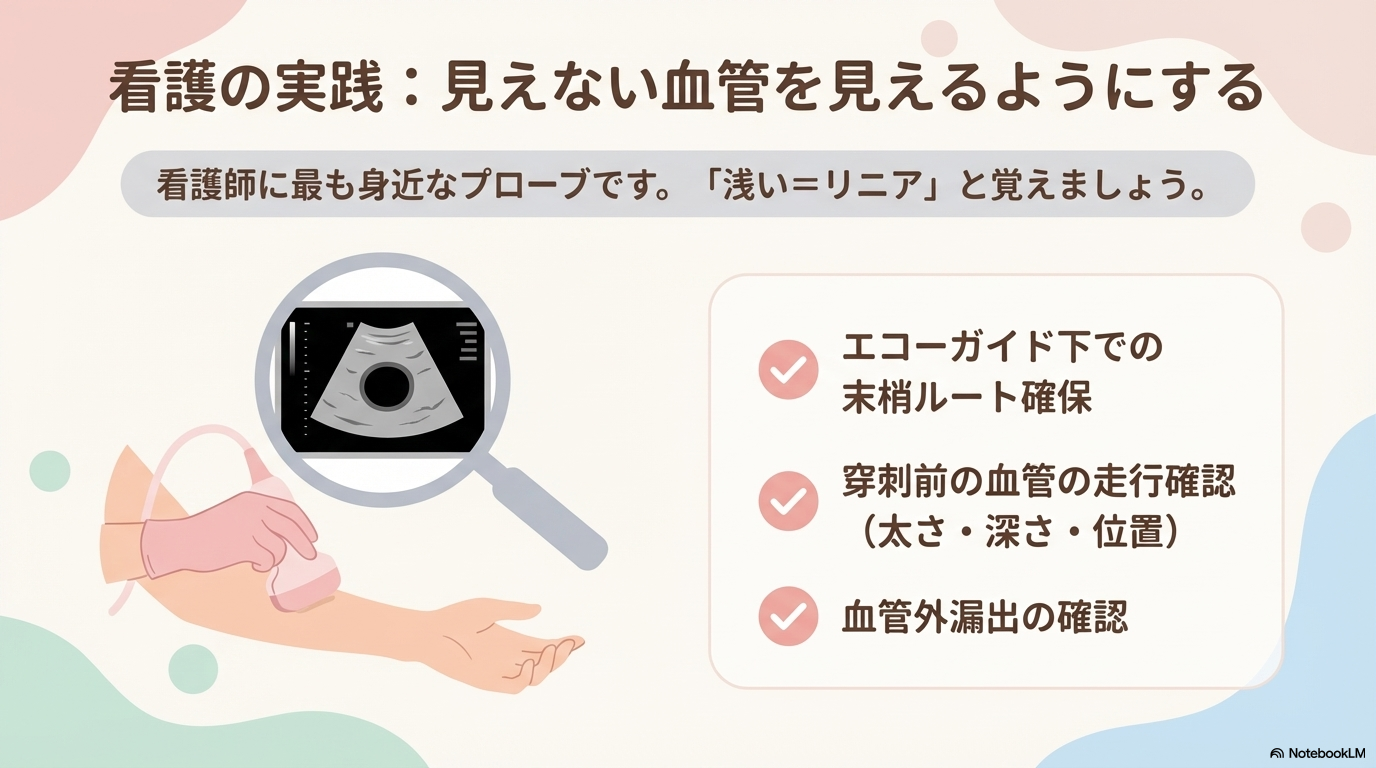 リニアプローブは、血管確保や体表観察などでよく使われる超重要プローブです🩺