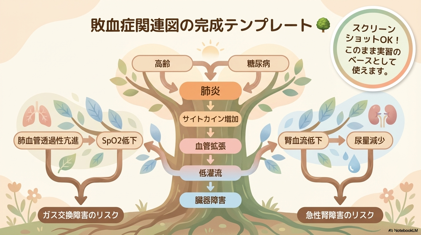 この記事では、敗血症の関連図を「そのまま書けるレベル」までやさしく解説します😊