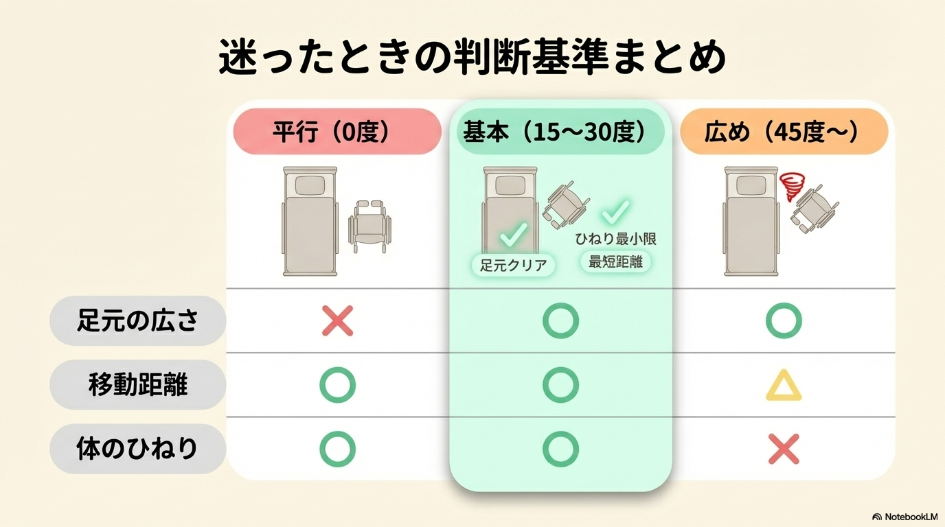 「車椅子移乗って、結局何度にすればいいの?」と迷ったことはありませんか?🩺